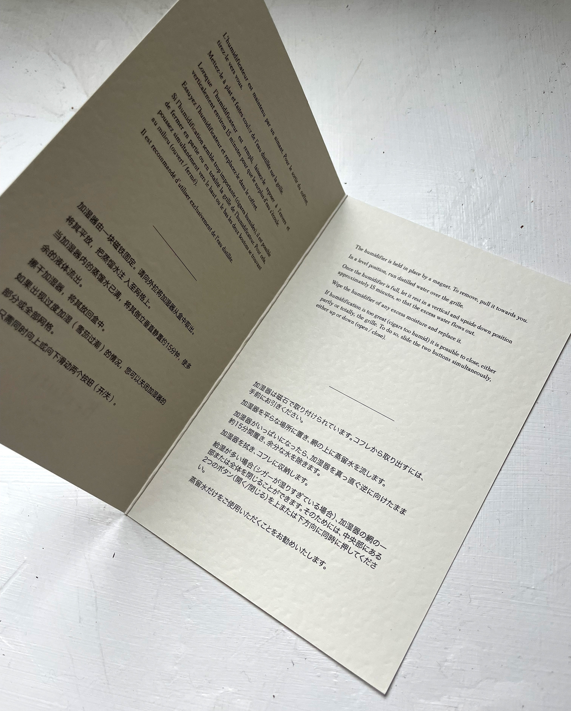 Conception du leaflet explicatif lors de l'achat de la boîte à cigares par les clients