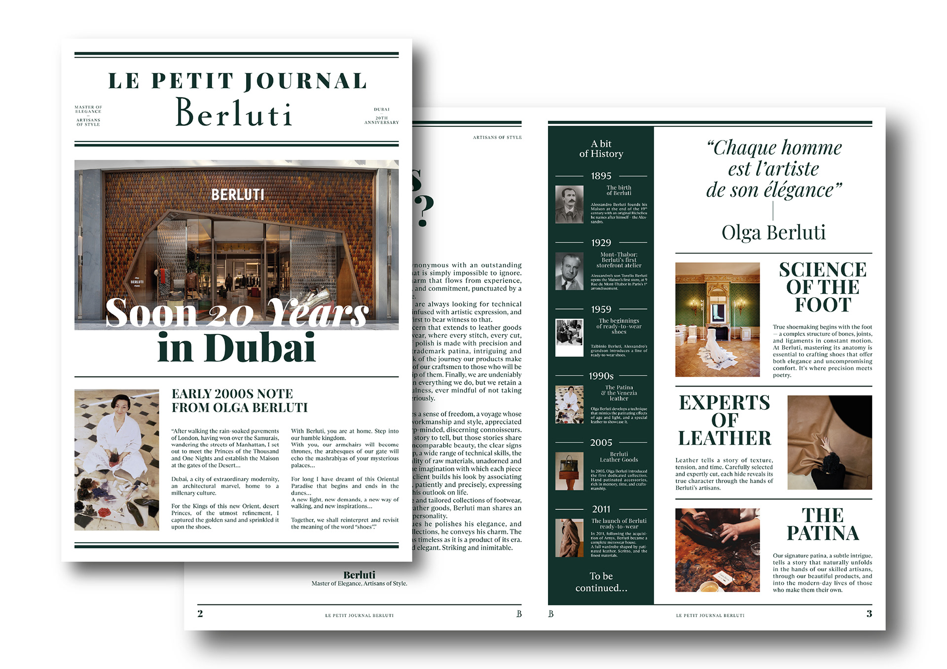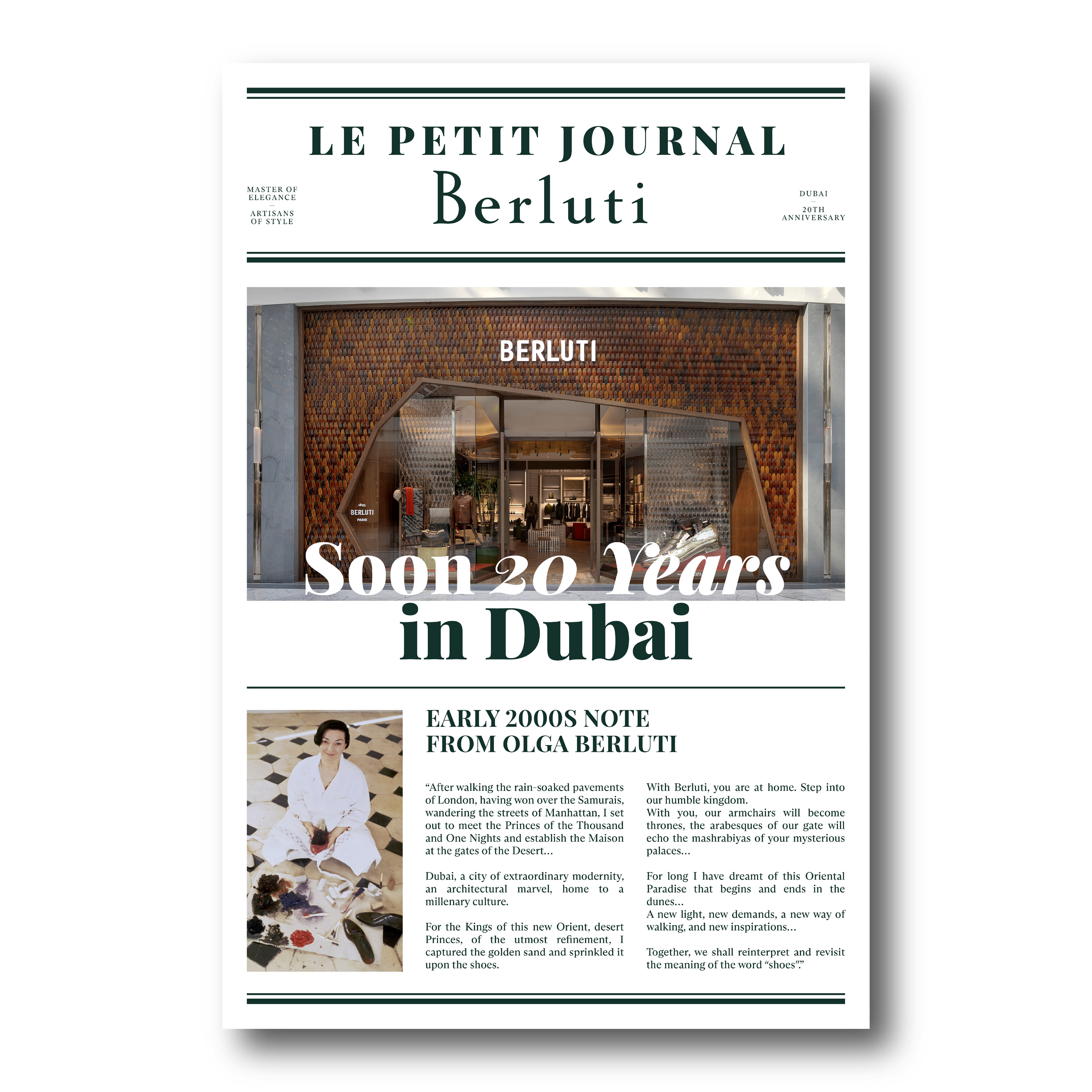 Mise en page d'un Petit Journal pour les 20 ans de Berluti à Dubaï
